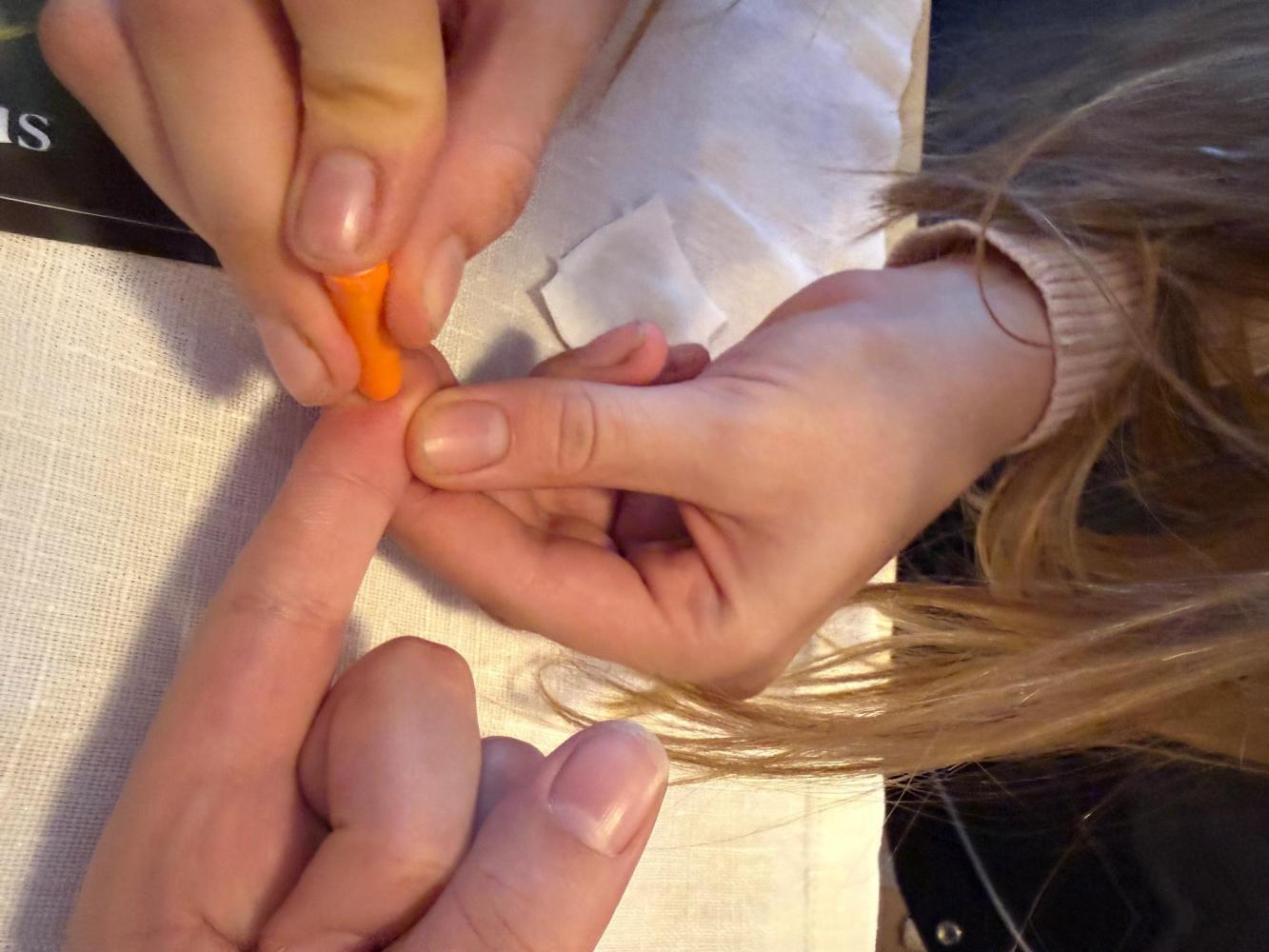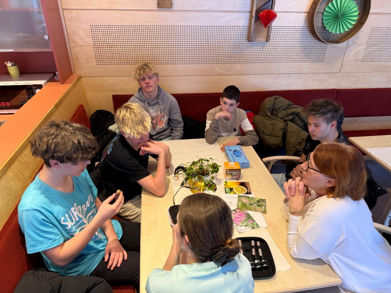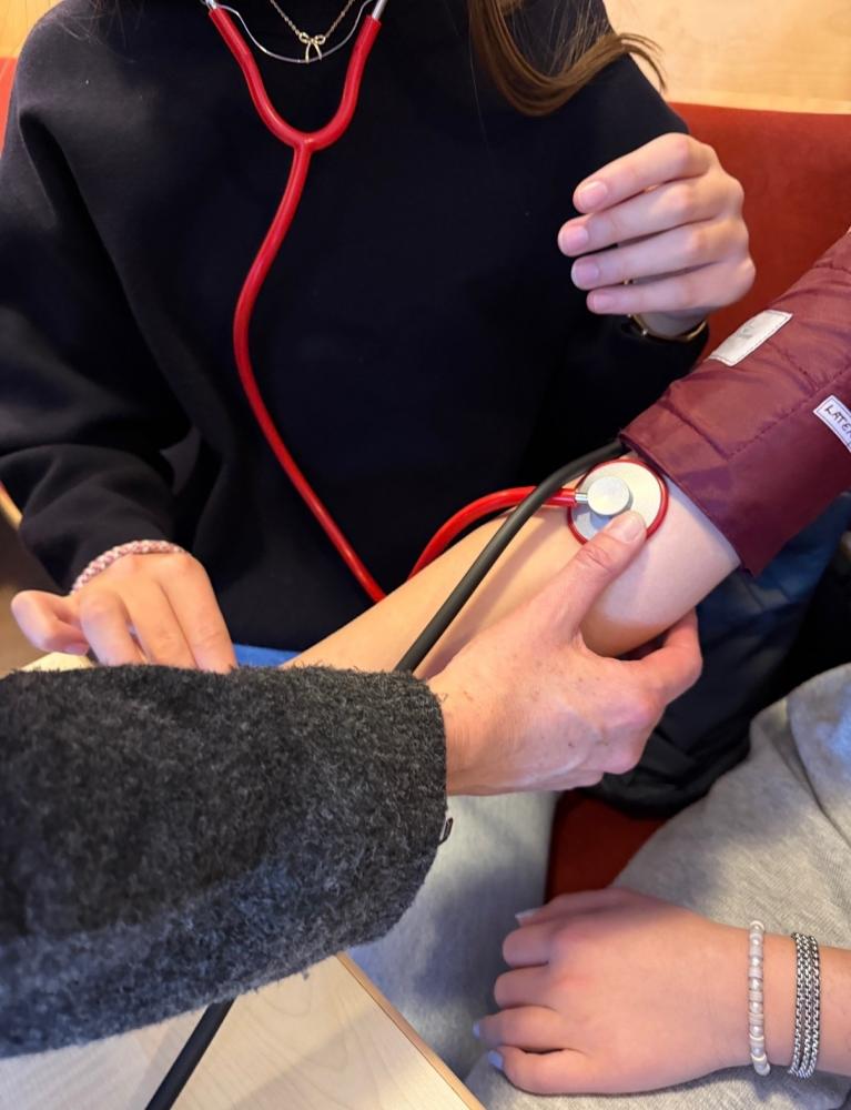 Währenddessen nahm die zweite Gruppe an verschiedenen praktischen Stationen teil. Dort konnten wir Blutzucker, Blutdruck und Sauerstoffsättigung messen und erhielten einen Einblick in die Aromatherapie.