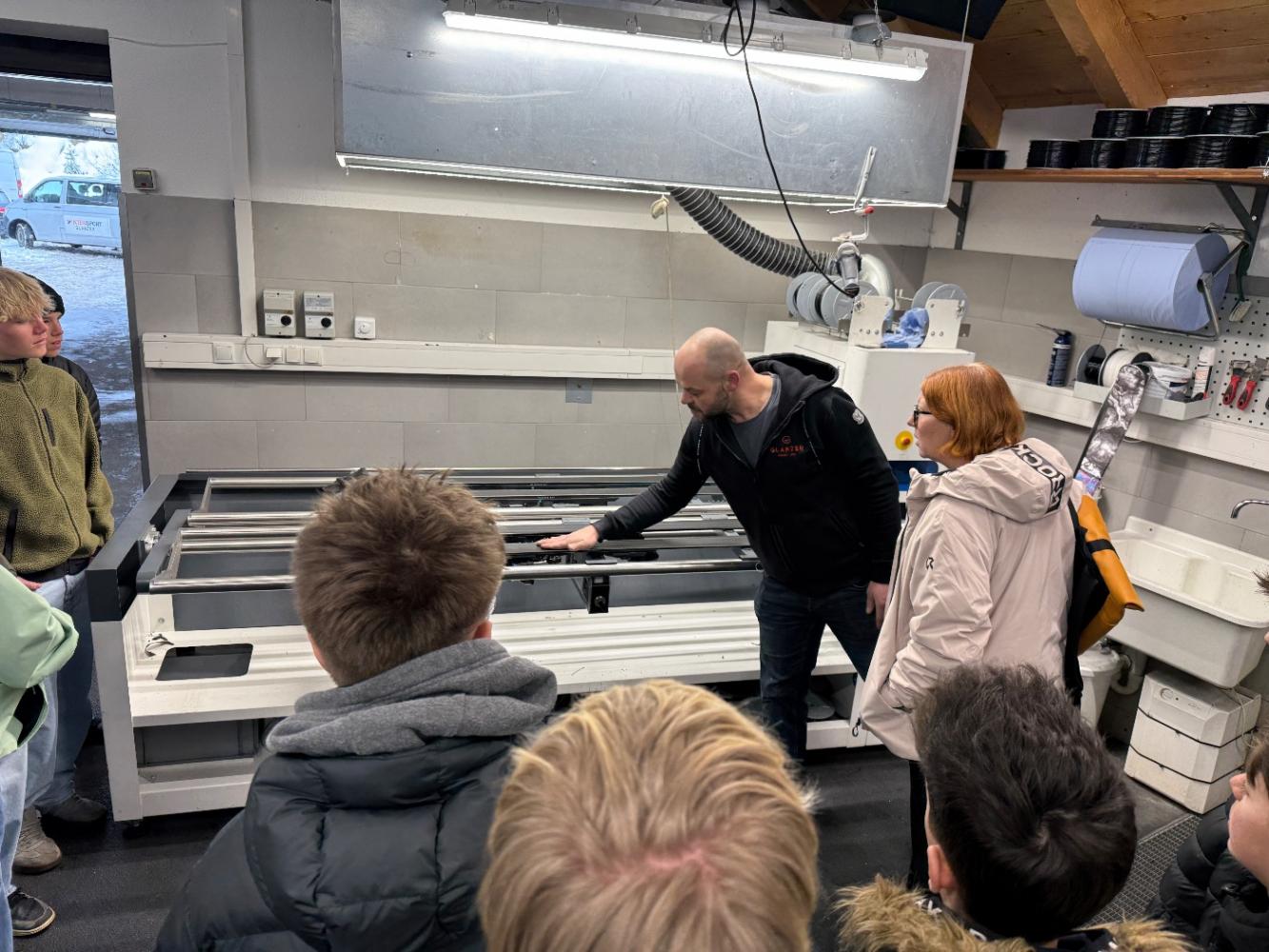 Wie jedes Jahr, so auch heuer waren die Schüler und Schülerinnen der 4. Klassen im Familienunternehmen Glanzer in Sölden zu Gast. Sophia und Emma empfingen sie bereits an der Bushaltestelle und führten sie ins Lager der Firma. Dort wurde ihnen die Bedeutung des Online-Handels mit über 12 000 Produkten vorgestellt. Weiters erhielten sie interessante Informationen über die „Skiaufbereitung“. Mit Bussen ging es zurück ins Hauptgeschäft nach Sölden. Dort erklärte Sophia das Erfolgskonzept der Firma und unterstrich die Bedeutung der Lehre für jedes Unternehmen. Anschließend ging es weiter zur Schuhsohlen-Anpassung, wo die Schüler und Schülerinnen erfuhren, wie wichtig individuell angepasste Einlagen für ein genussvolles Skifahren sind.