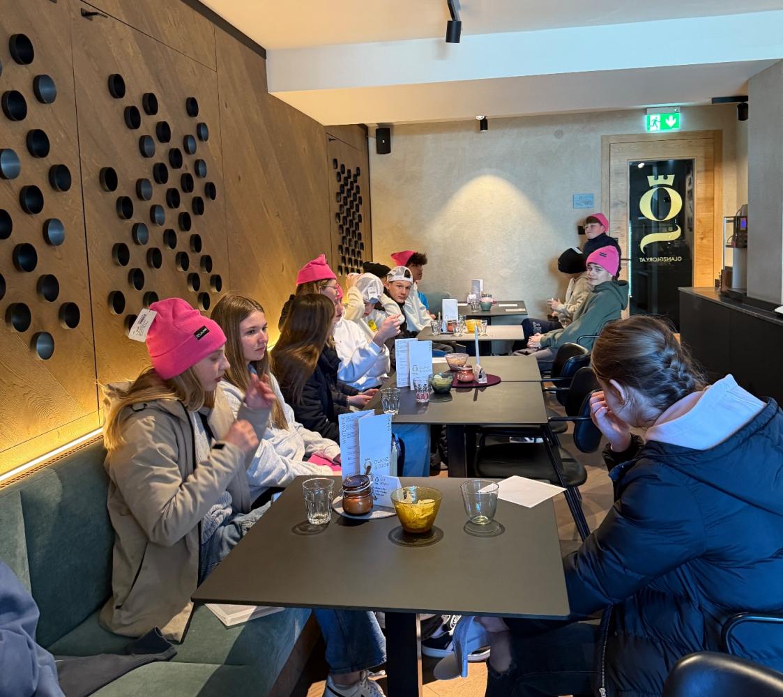 Zunächst besuchten wir den Skiverleih, wo die Mitarbeiter uns den Ablauf der Skiausgabe und -rücknahme erklärten. Anschließend ging es weiter zur Schuhsohlen-Anpassung, wo wir erfuhren, wie individuell angepasste Einlagen für maximalen Komfort erstellt werden.